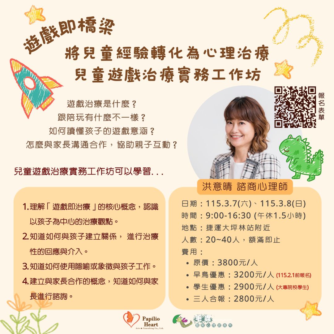 兩天的兒童遊戲治療實務工作坊,帶你一起認識與學習遊戲治療,助...